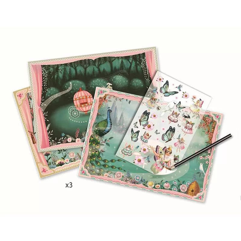 Découvrez les décalcomanies Au pays des fées, de Djeco, 90 décalcomanies à mettre en scène sur 3 décors féeriques, une activité ludique et créative pour les enfants dès 4 ans.