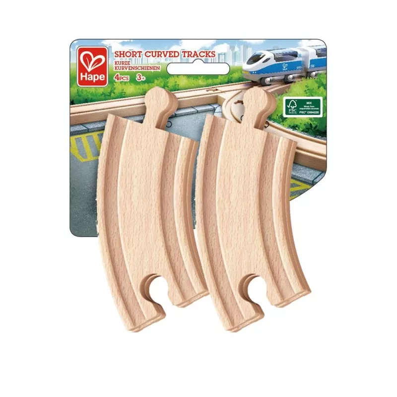 Set de 4 petits rails courbés Circuit de train en bois Hape – Pour les petits dès 3 ans, éveil émotionnel avec ces rails à ajouter aux circuits de train traditionnels