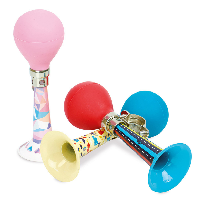 Klaxon de vélo en métal décoré. Peut s’adapter à tous les guidons grâce à son système vissé.
