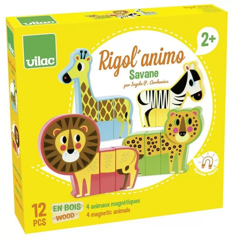 Découvrez les Rigol’Animo, 4 jolis animaux aimantés en bois, illustrés par Ingela P. Arrhénius, de Vilac.